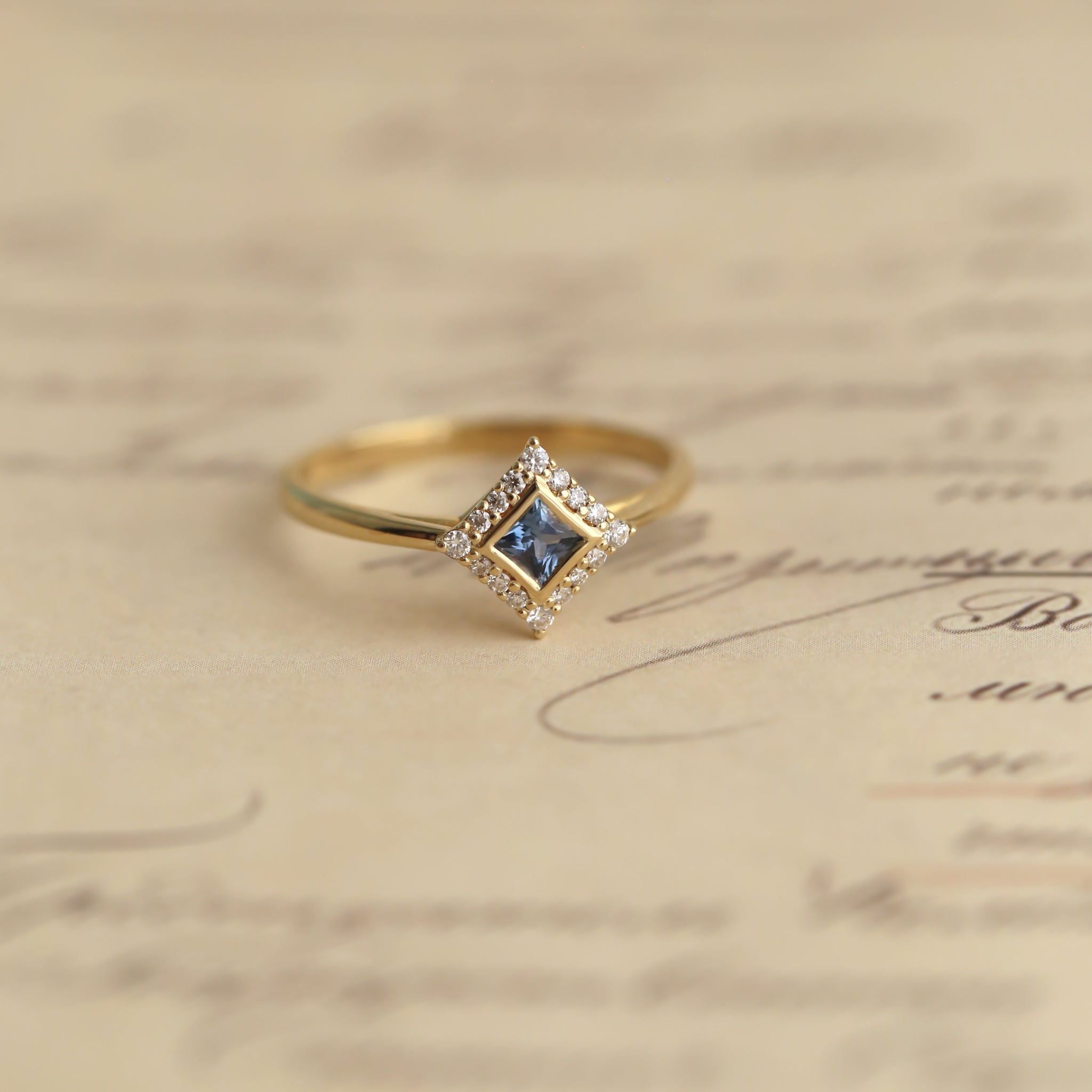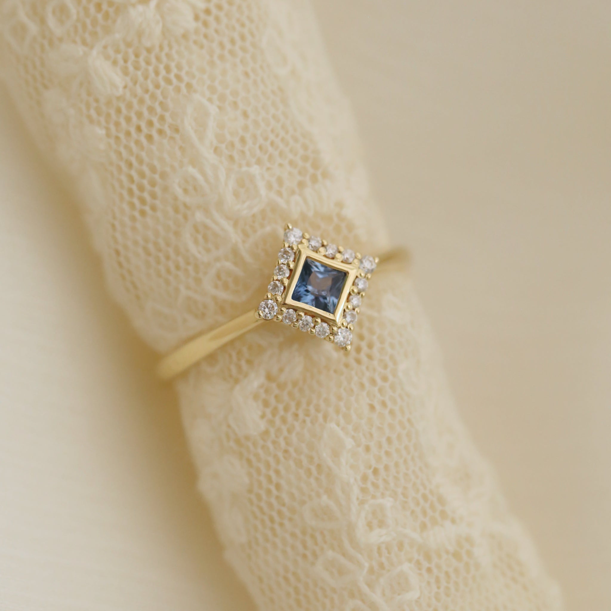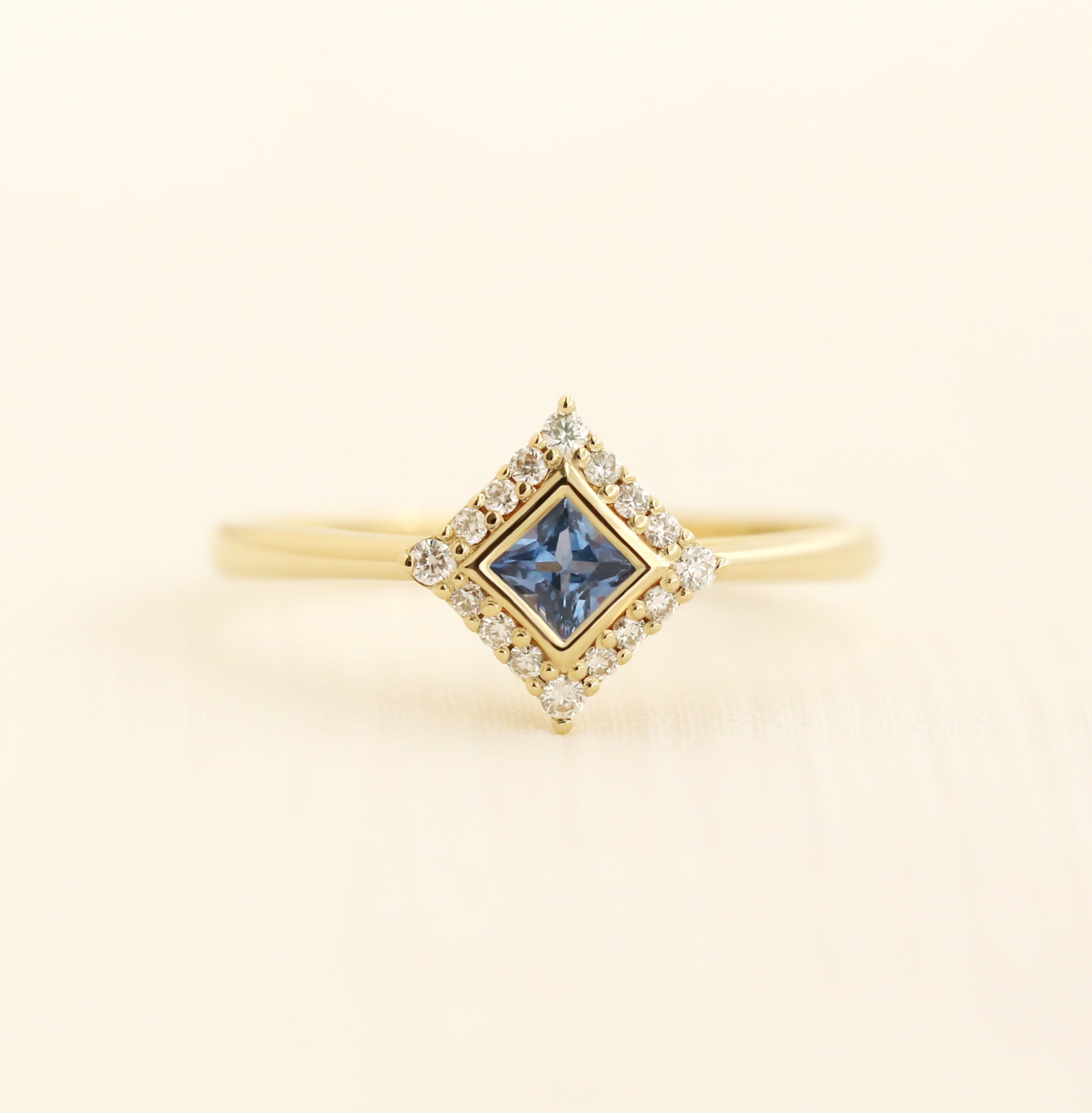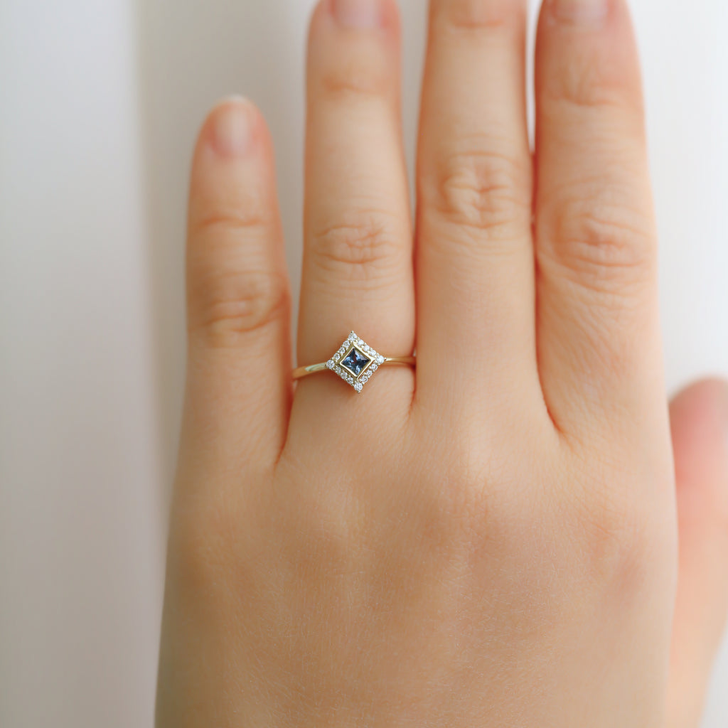 Stone : 3.0mm(Center - Princess cut), 1.2mm 4pcs, 1.0mm 12pcs(Side - Round cut)