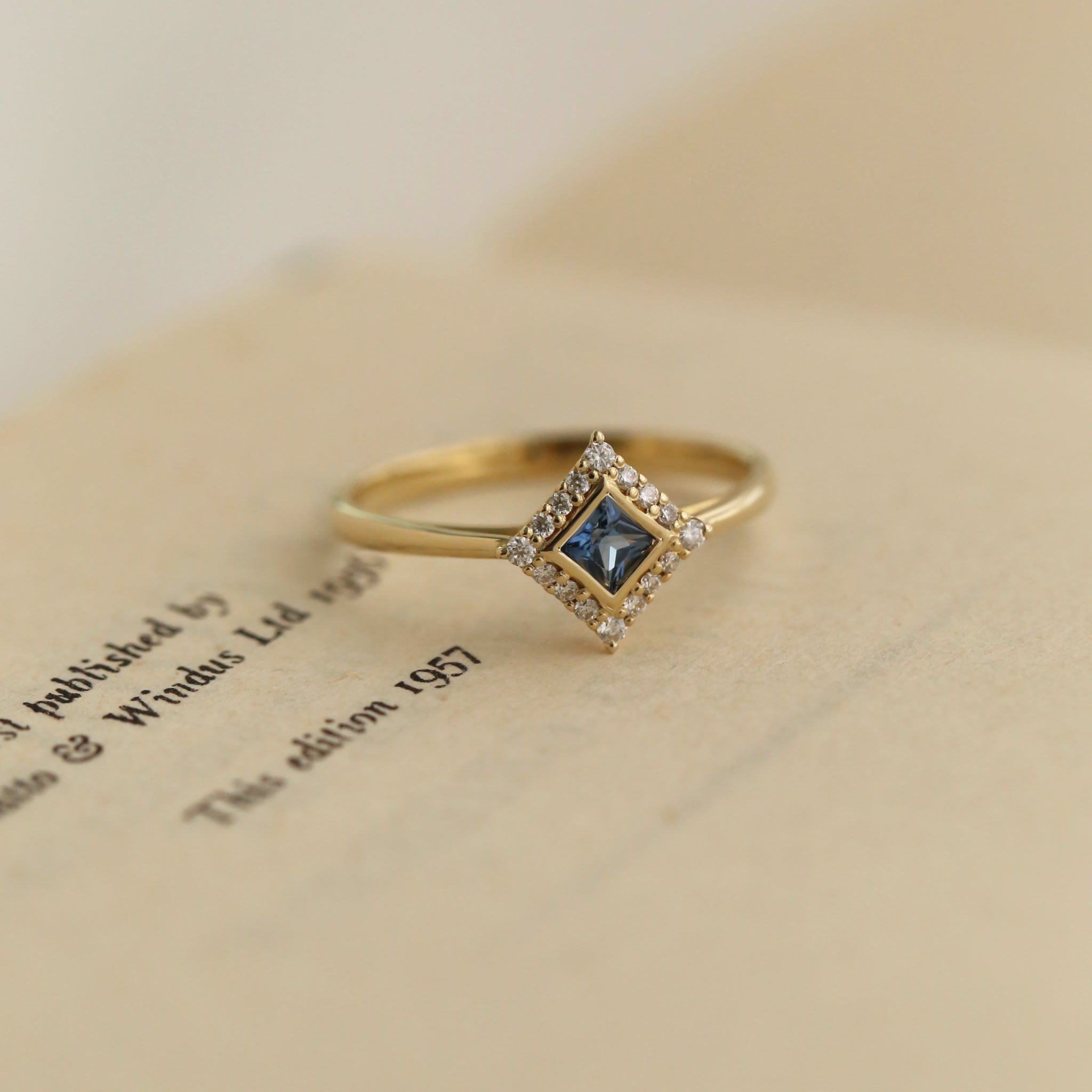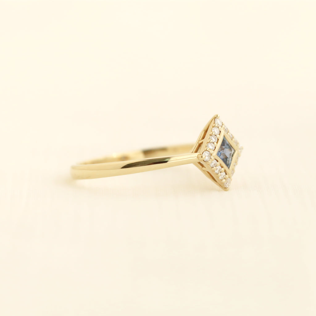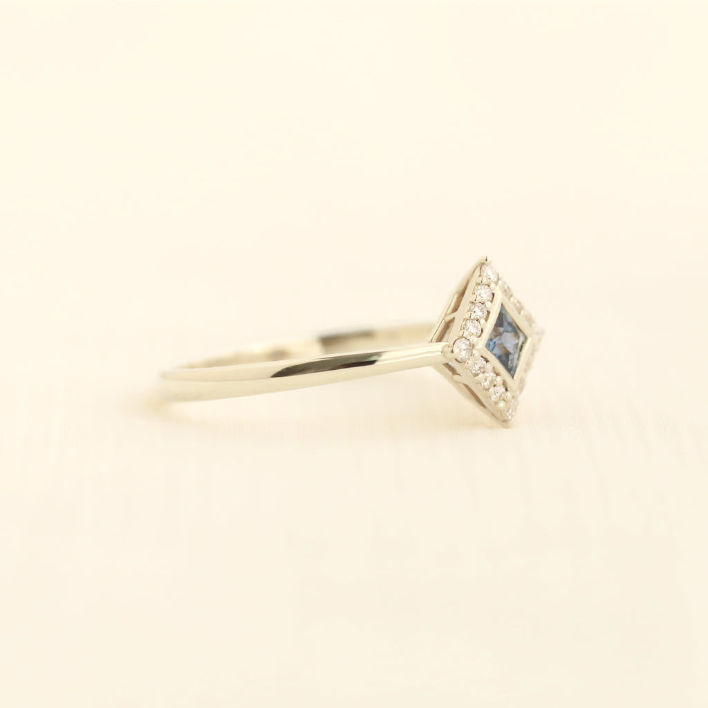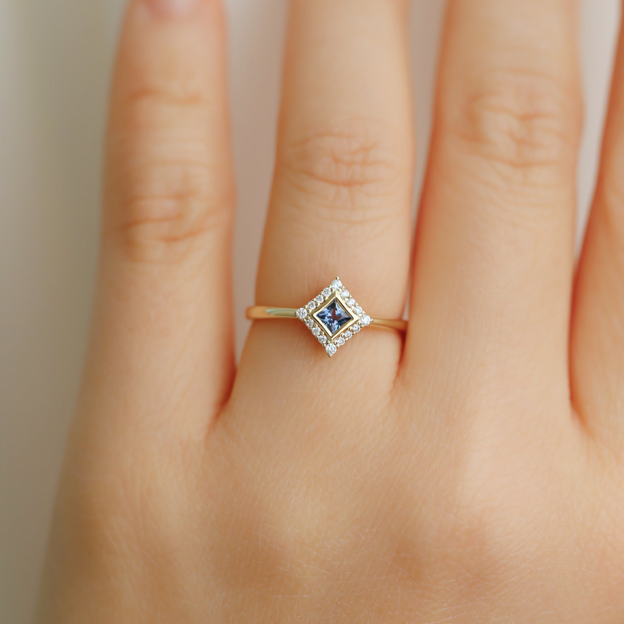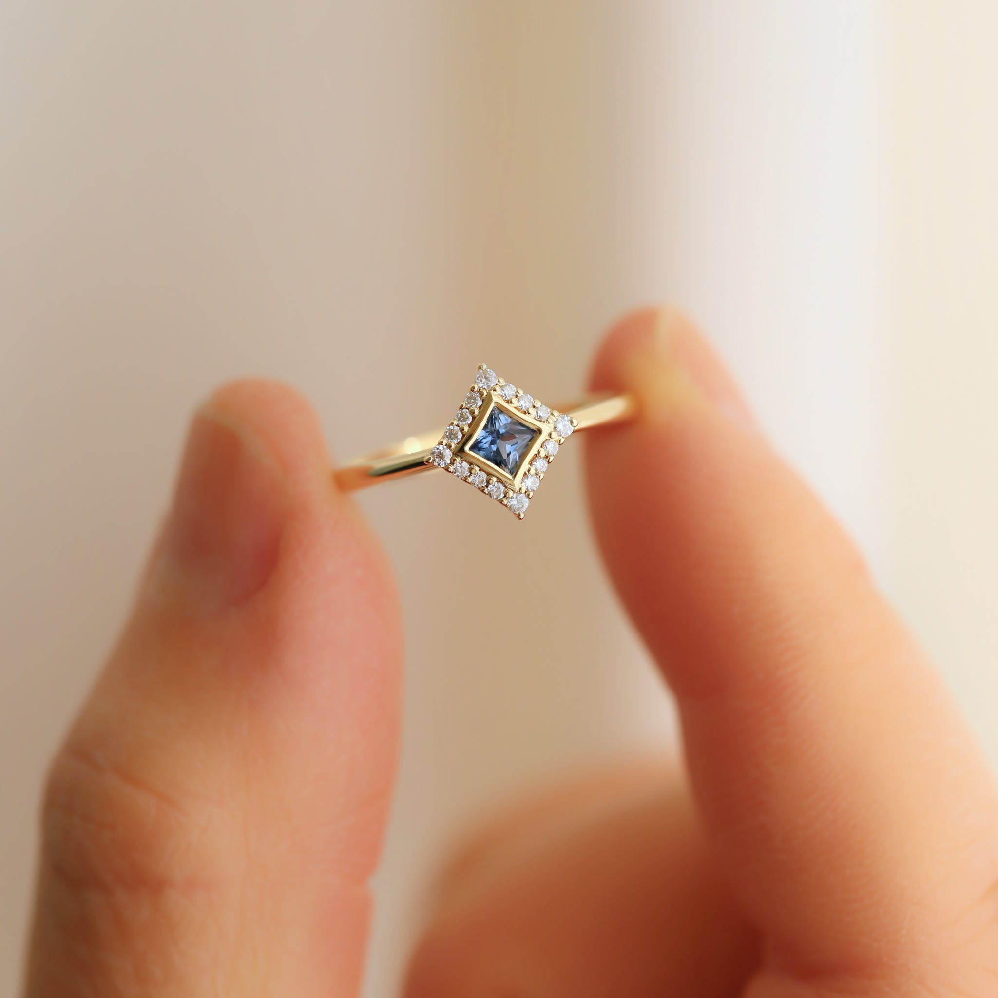 Stone : 3.0mm(Center - Princess cut), 1.2mm 4pcs, 1.0mm 12pcs(Side - Round cut)