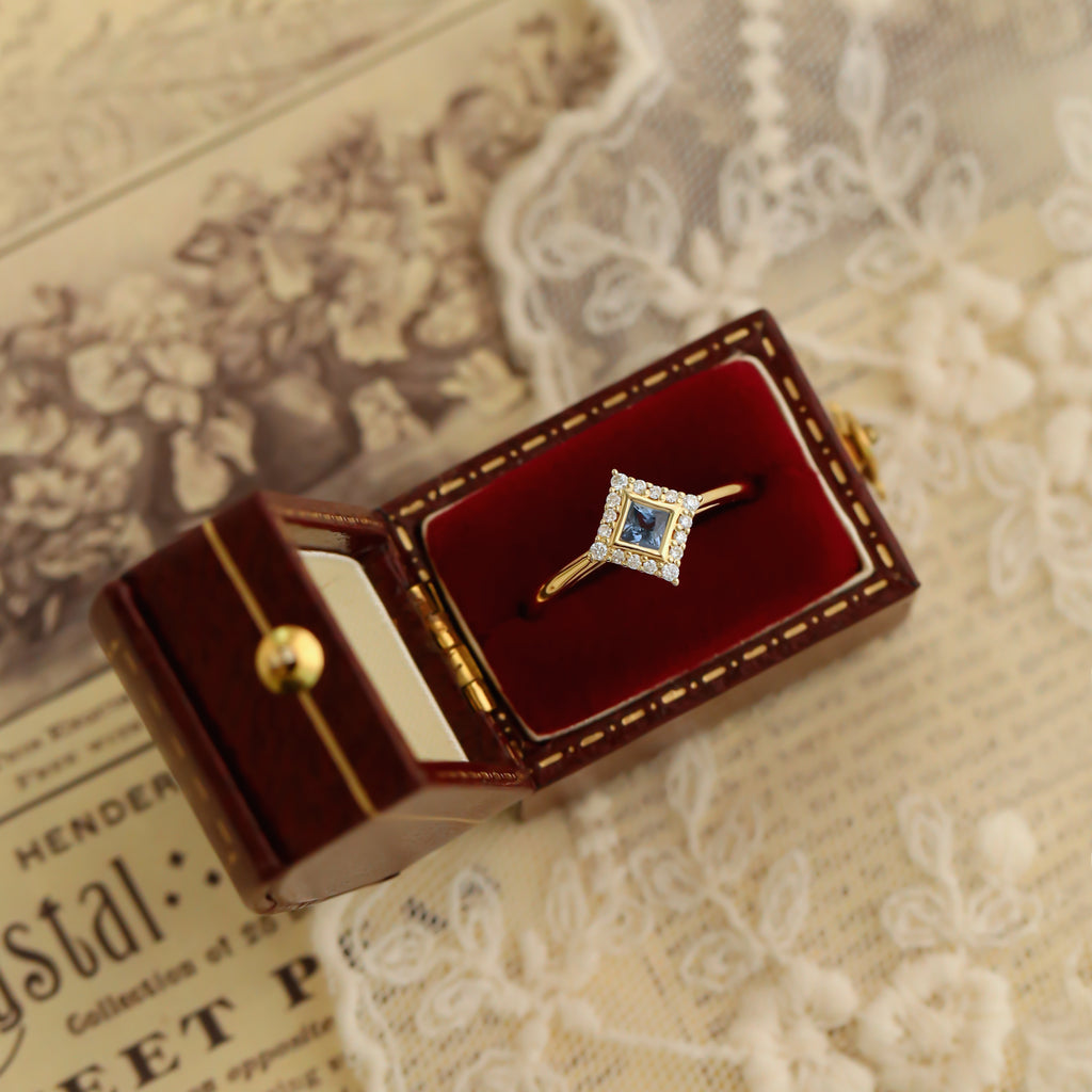 The deep hue of the sapphire, as if holding light within, conveys quiet sophistication through time.